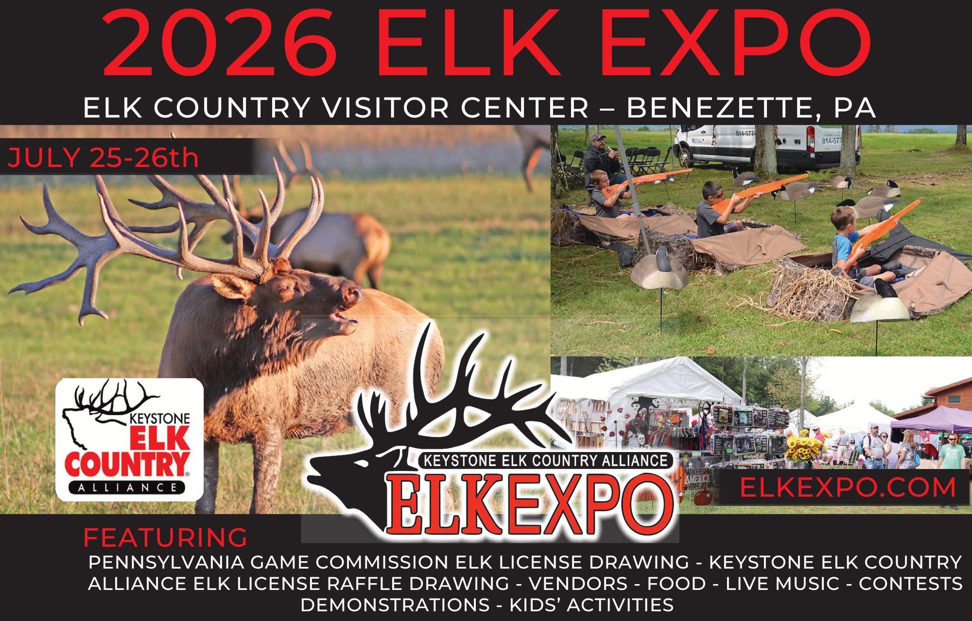 Just before the highly anticipated elk rut begins to peak, the Keystone Elk Country Alliance and the Elk Country Visitor Center welcome visitors to the largest elk celebration in the Northeast. Held each year on the grounds of the Elk Country Visitor Center in Benezette, the annual Elk Expo is a can’t-miss event for anyone who loves the outdoors.